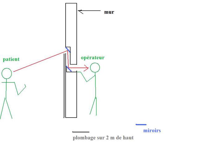 Effectivement ma salle n'est pas conventionnelle d'où les différentes interprétations. J'avais vu cette histoire de salle de 9m2 et de paravent plombé avec déclenchement à l'intérieur.