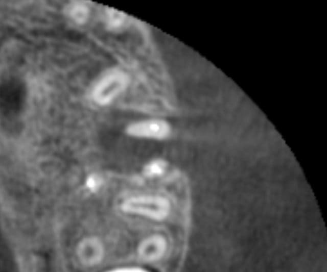 Lyon: adulte avec une énorme perte osseuse sur incisive centrale supérieure et après RTE sous hypo et je crois une ou deux max.séances à l'hydroxy de Calcium et avoir obtenu une