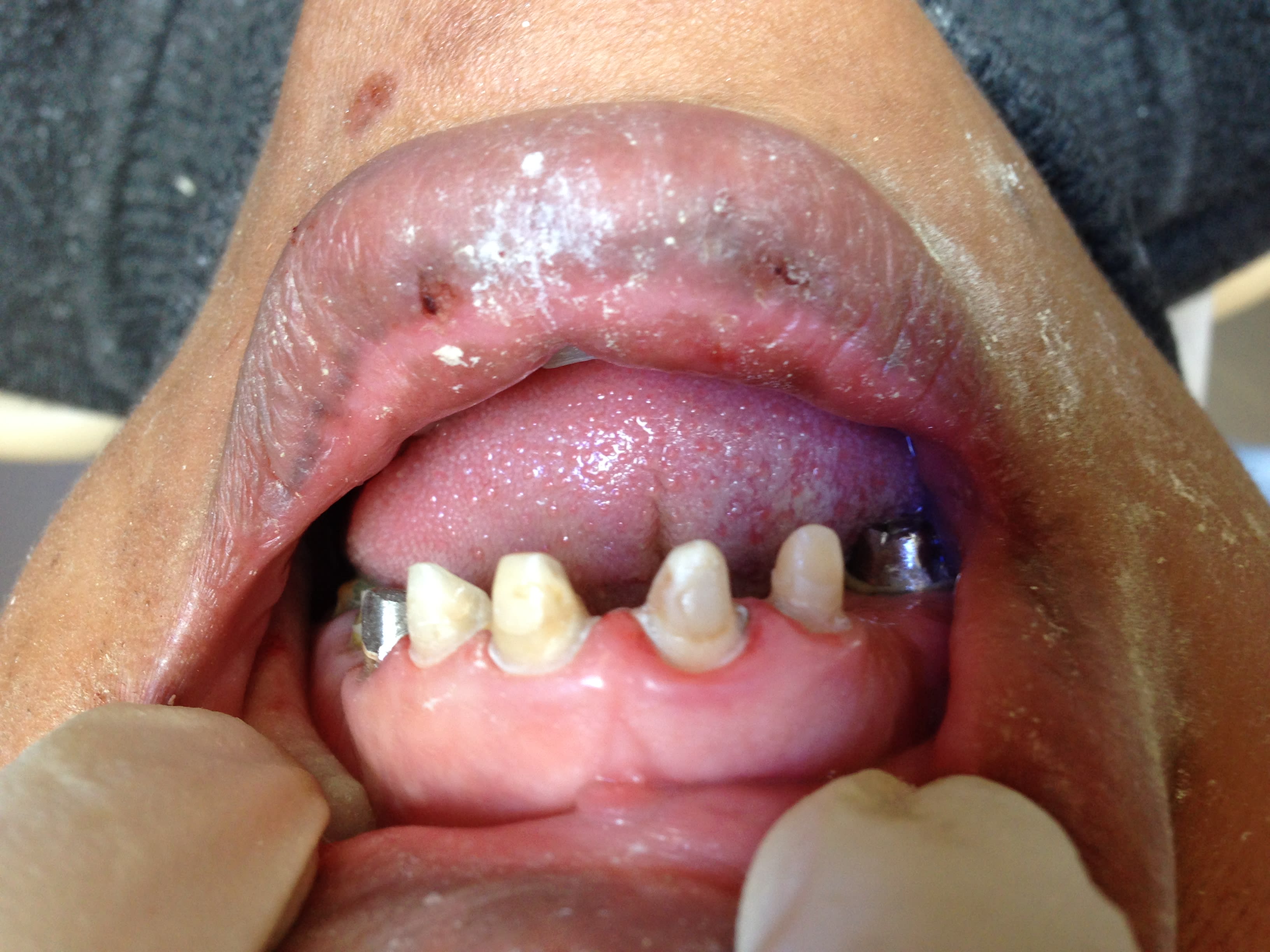 Ouais bin si il lui a fait des provisoires de cheval t'étonnes pas que la lèvre est morflé. C'est un blagueur le Junior.