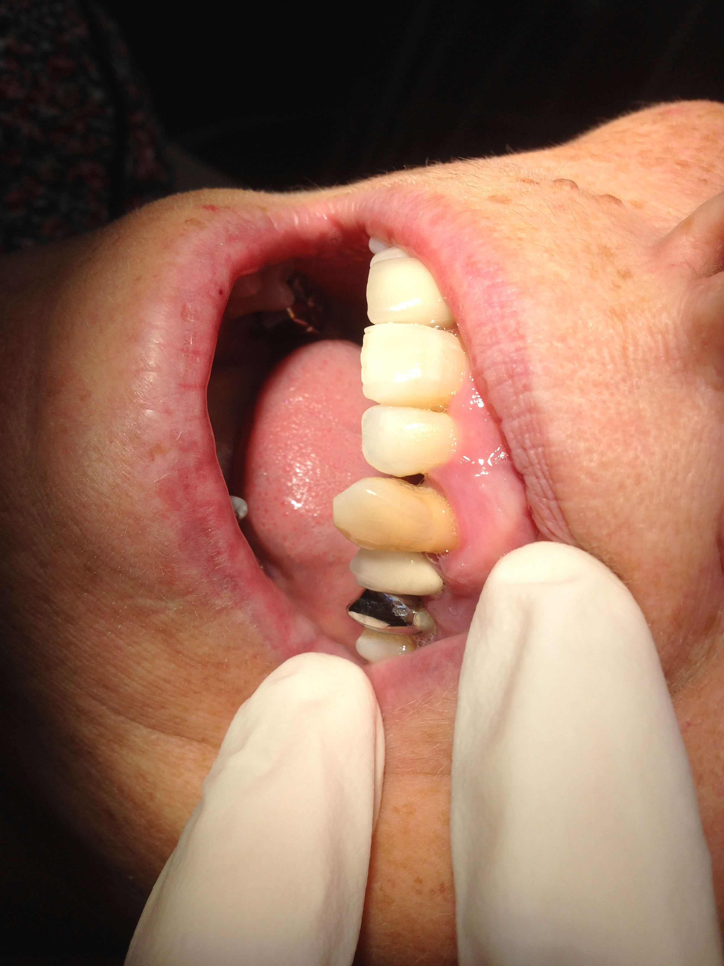 Ce qui est moins marrant c'est d'avoir des urgences avec des bridges à ailettes qui se décollent ou alors d'avoir de magnifiques nécroses avec de jolis tenons dentinaires qui viennent titiller la pulpe ou avec de très jolies préparations linguales qui sont infiltrées . C'est vrai que c'est très marrant de voir ça. Je trouve aussi marrant de voir des incisives qui ont une teinte très différente de celles qui ne sont pas support de bridge à ailettes. C'est très très rigolo et c'est surtout très esthétique.
