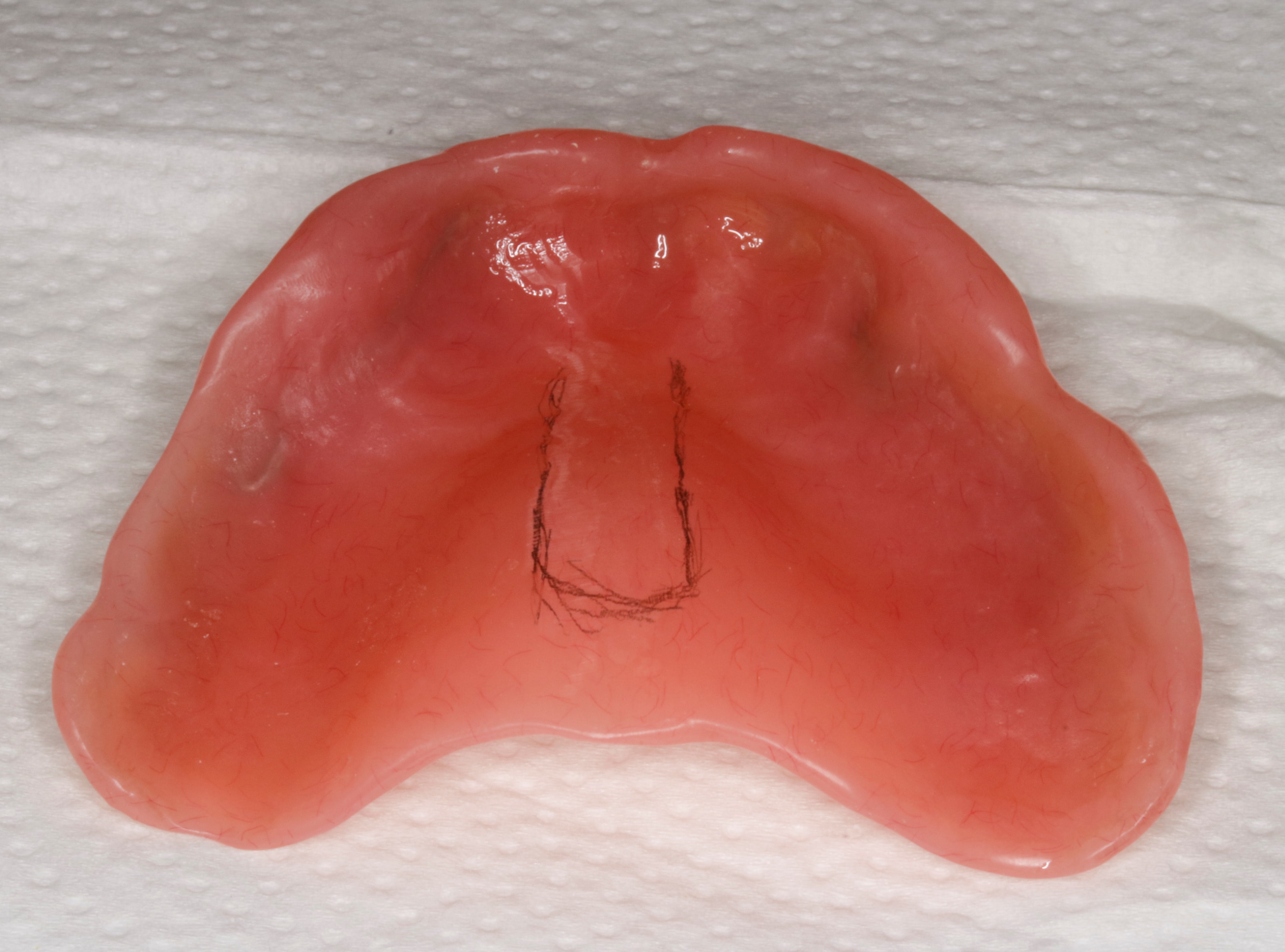 La photo n'est pas très explicite, mais comment gérer le secteur postérieur empreinte,...) , vu que le trait noir , correspond à ma largeur de crête, avec un retour jugal dès le trait noir, et une langue tonique, qui vampirise mon secteur dès sa sollicitation.
