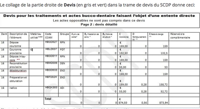 Bien sur comme ca la différence de remboursements entre dentiste conventionné et déconventionné sur un devis de 874,5 que de