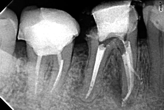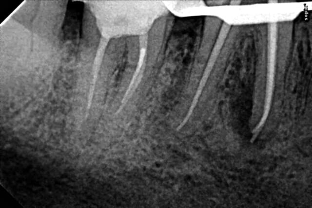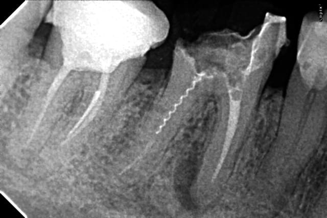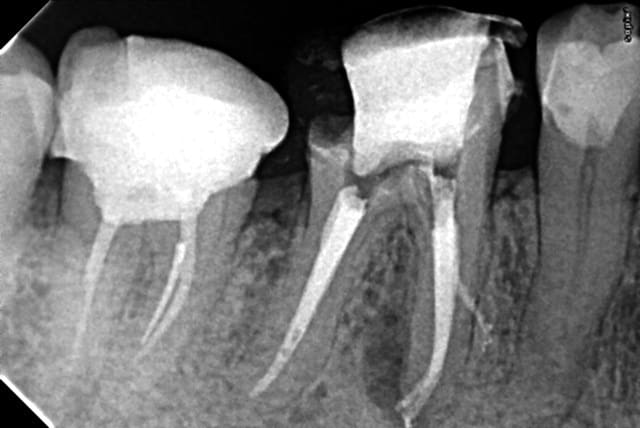Et là, un gros canal latéral ou un coup de pro-taper retraitement mal placé ??