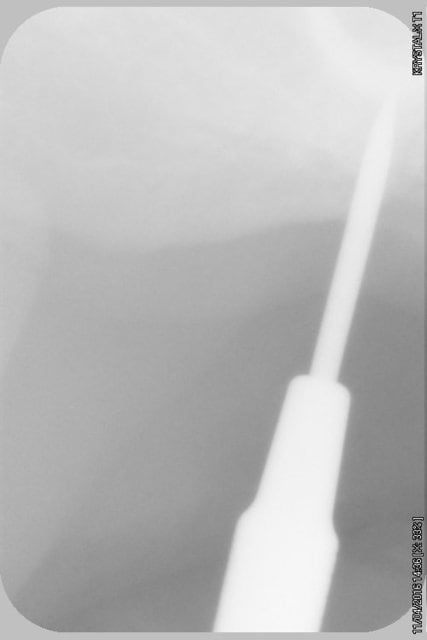 en voyant les images de contrôle, et même si çà n'était pas prévu, j'aurais immédiatement proposé au patient d'intervenir aussi sur cette dent...c'est pas le temps qu'il faut en plus une fois qu'on est parti pour de la chir pour pouvoir régler ce problème...