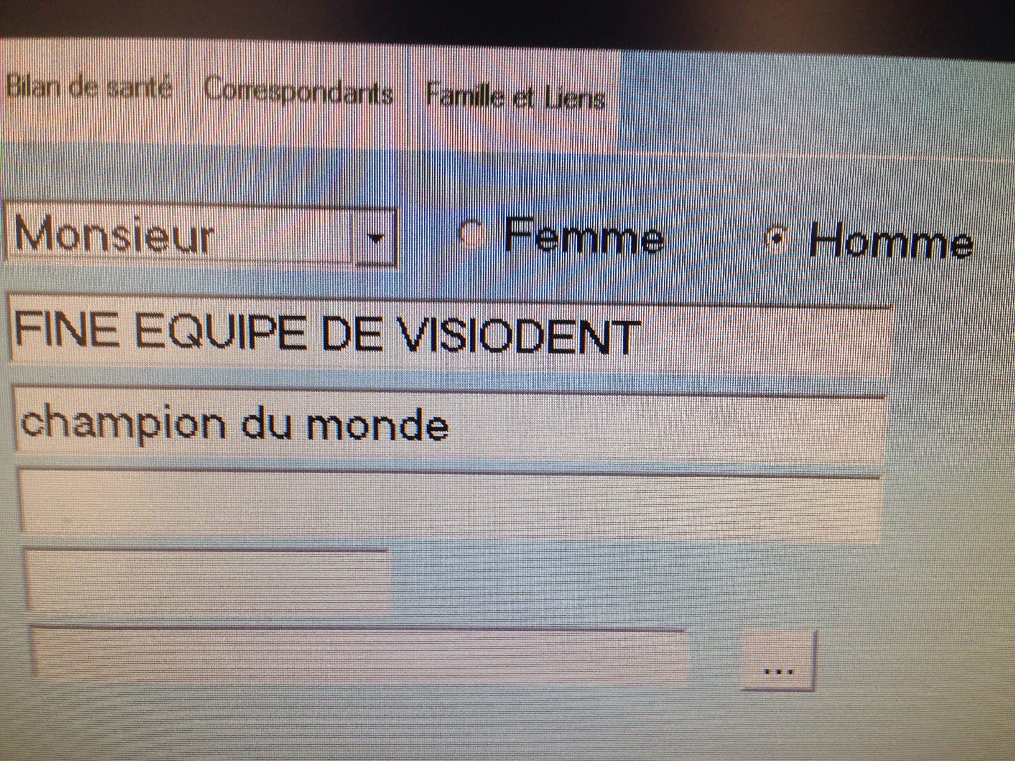 Est ce que l'équipe de Visiodent a remarqué qu'ils avaient mis en place deux endroits pour choisir le sexe des patients : un menu déroulant et des cases à cocher -> du coup ça n'a aucun intérêt D'avoir deux endroits pour renseigner Le sexe