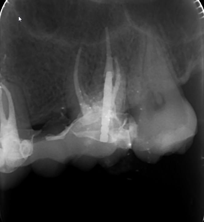 La patiente a eu du bol de tomber sur lui car à terme c'est pas une dent qu'elle aurait perdu mais 3. ( bridge sur tt pouri de 26 ET 24).
