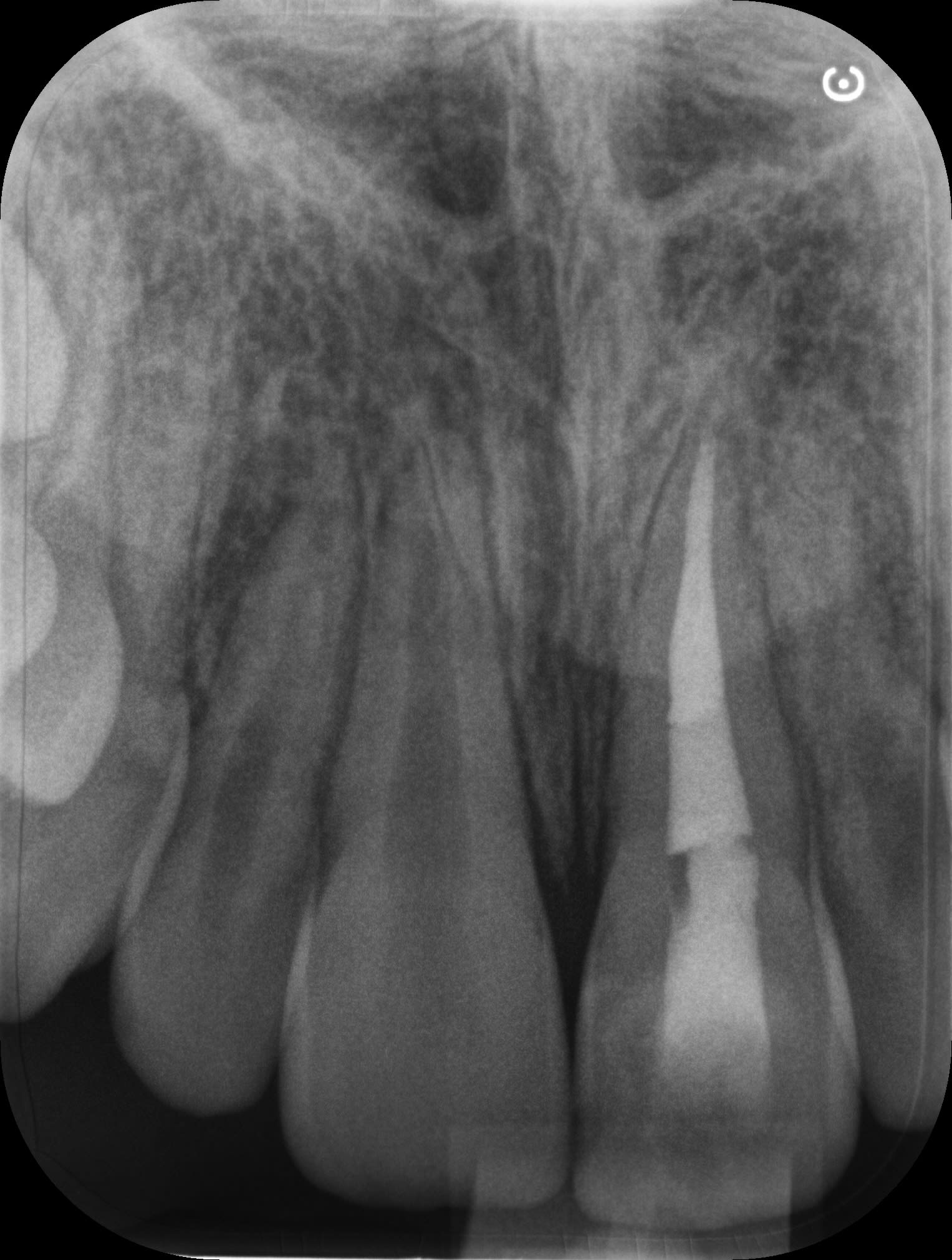 - NB : 2 inter-séances à l'hydroxyde de calcium ont été nécessaire avant l'obturation 30 jours plus tard