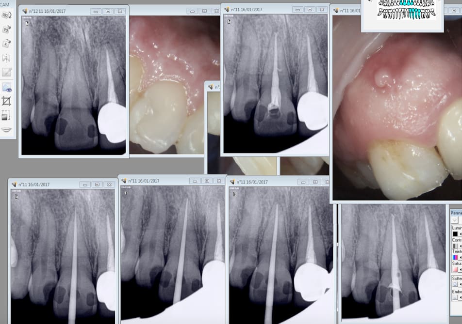 Voici en pièce jointe typiquement les images de dépassements que jai régulièrement. Jai pourtant suivi les instructions du commercial dentsply. Je ne pense pas qu'il s'agisse de gutta étant donné la fine épaisseur... bon je pense que je vais finir pas revenir à la gutta classique ... :/
