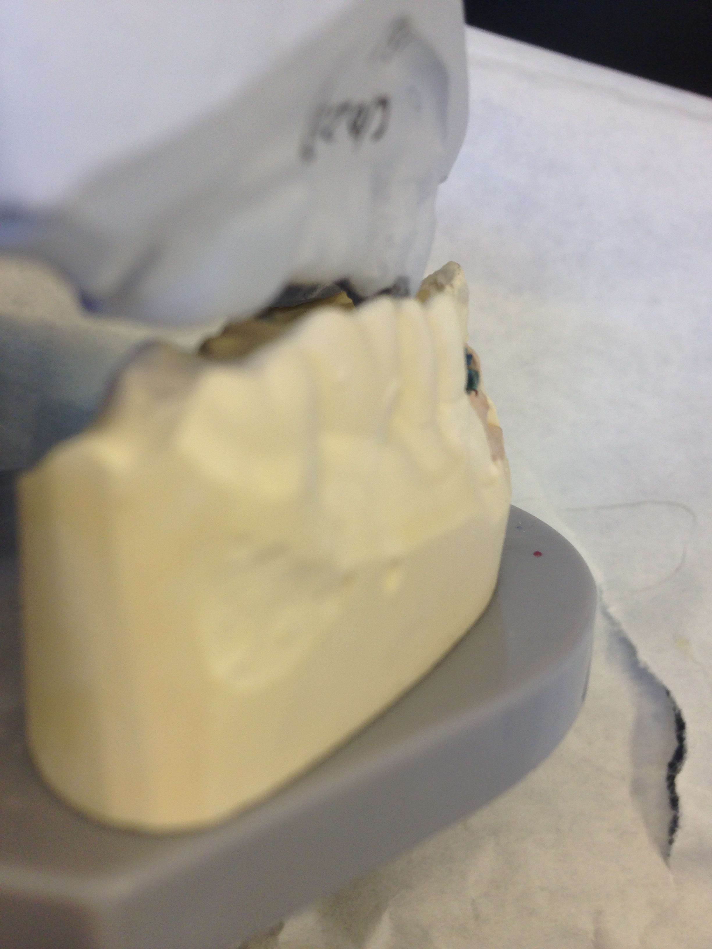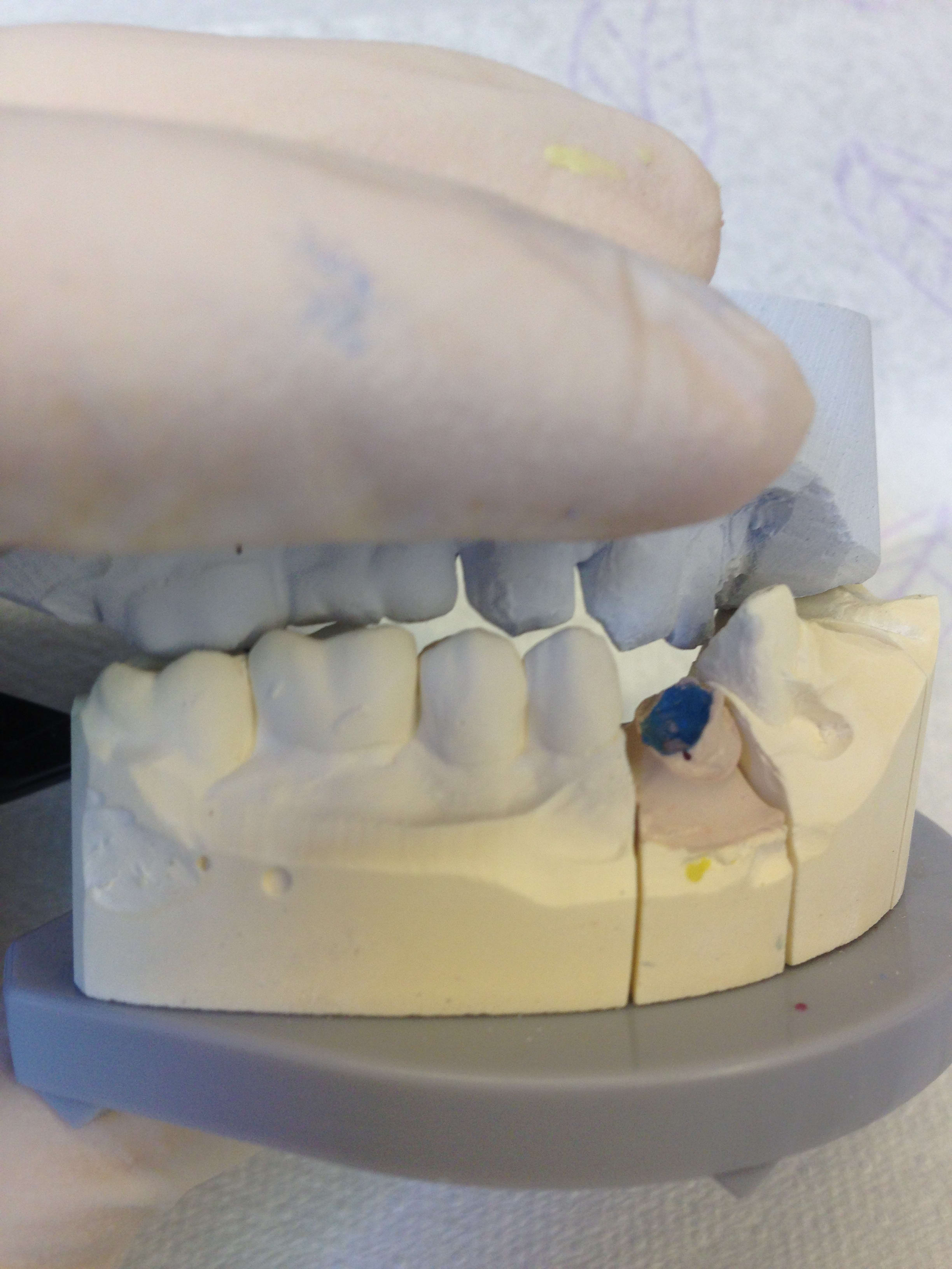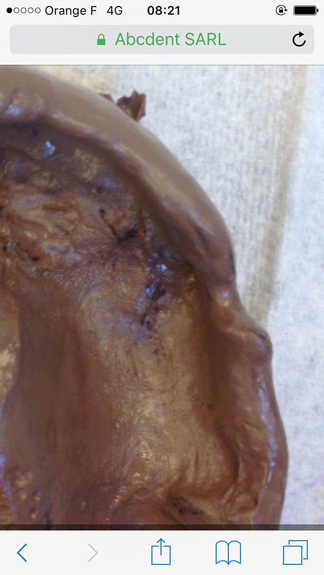 -> voilà comment ils mettent en occluseur ... c'est bizarre quand je regarde mon empreinte on voit qu' il y a des contacts Entre les molaires 😊