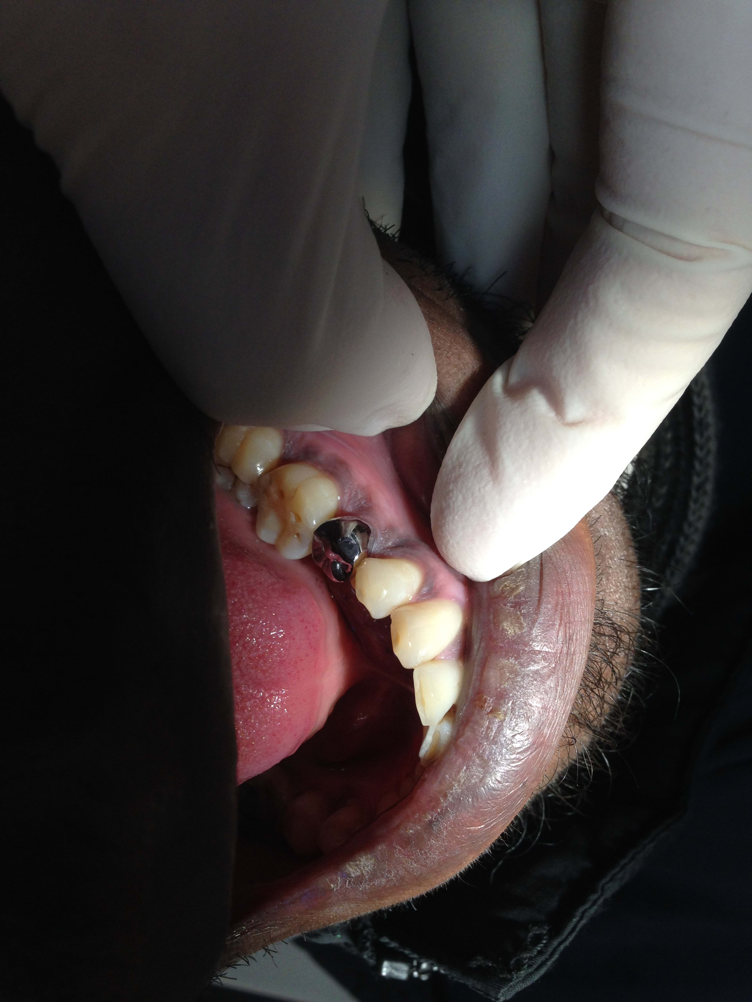 -> tenon de l'inlay core inadapté : 2 mm d'espace entre le bout du tenon et la gutta. Tenon sous dimensionné