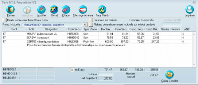 A quel tarif tu ferais une endo molaire, la RCR et la couronne ? Comment ventilerais tu tout ca ?
