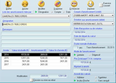 > Ici système à plaques CS 7600 vendu mais qui continue d'etre amorti. Comptable