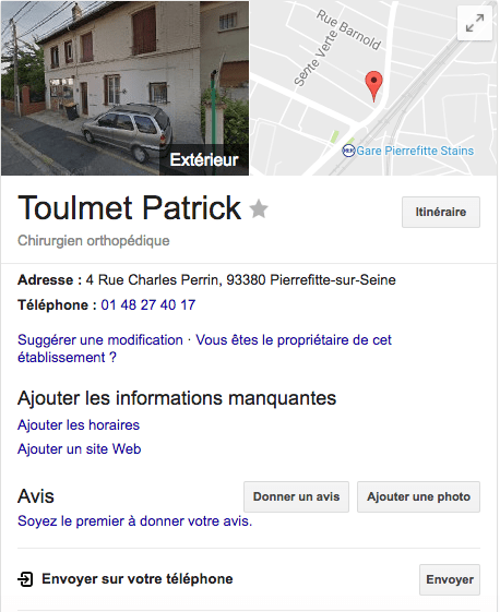 > Le Docteur TOULMET PATRICK exerce au 4 RUE CHARLES PERRIN à PIERREFITTE SUR