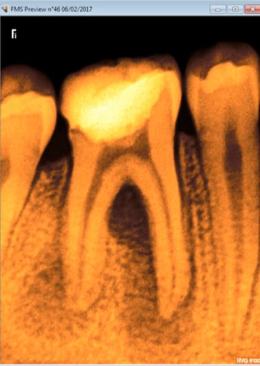 -> les deux autres canaux sont calcifiés à mort et racines courbées