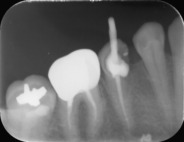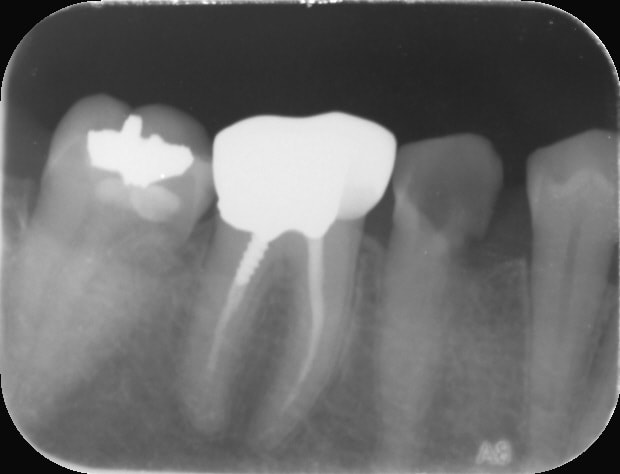 Ah c'est dommage! La 6 a une couronne non adaptée en distal (premiÚre RX il y a la reconstitution qui déborde, c'est pas étanche) et probablement une indication de RTE, la 5 non conservable à long terme, 4 en pilier antérieur dent vivante, voilà une belle indication de bridge :-)))