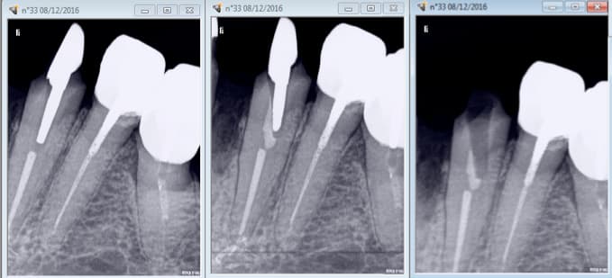 D'après ce qu'on voit sur les Rx j'irais quand même bien enfouir les limites, histoire de cercler au max, il y a de la rétention sur ton IC ? Et les forces vont se répartir d'une drôle de façon sur ton IC et dans le canal :(