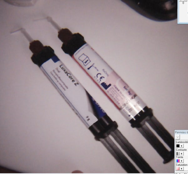 Gouré de ciment de scellement. Utilisé du luxacore à la place. Impossible de sceller inlay core de 33 c'était pris. -)