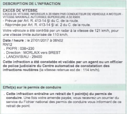 Pile poil ce que j'avais calculé. Vitesse compteur 127 KM/h, Vitesse réelle moins 6 KM/h 121 KM/h moins 5 % 114 Kmh retenu. 1 point. -)))