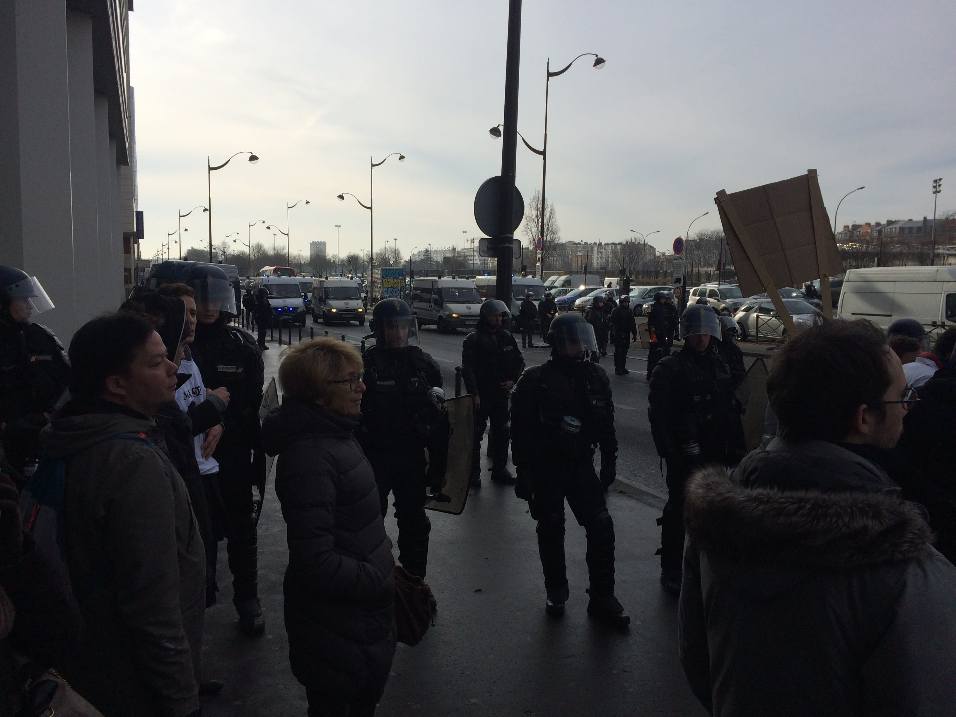 Lancer de modèles en plâtre et d'oeufs contre la façade de l'UNCAM, fumigènes ...pour l'instant pas d'intervention des forces de l'ordre