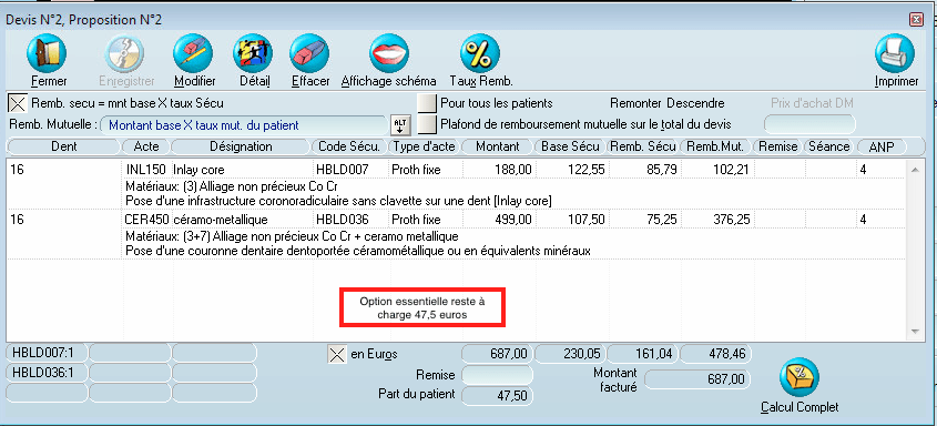L'option au dessus essentielle ( 350%) ne suffira pas à tout rembourser reste à charge 47,5 euros.
