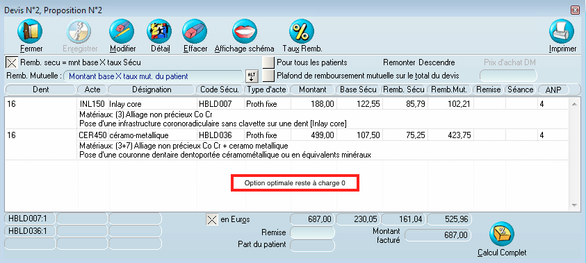 Il faudra passer à l'option optimale pour un reste à charge nul.
