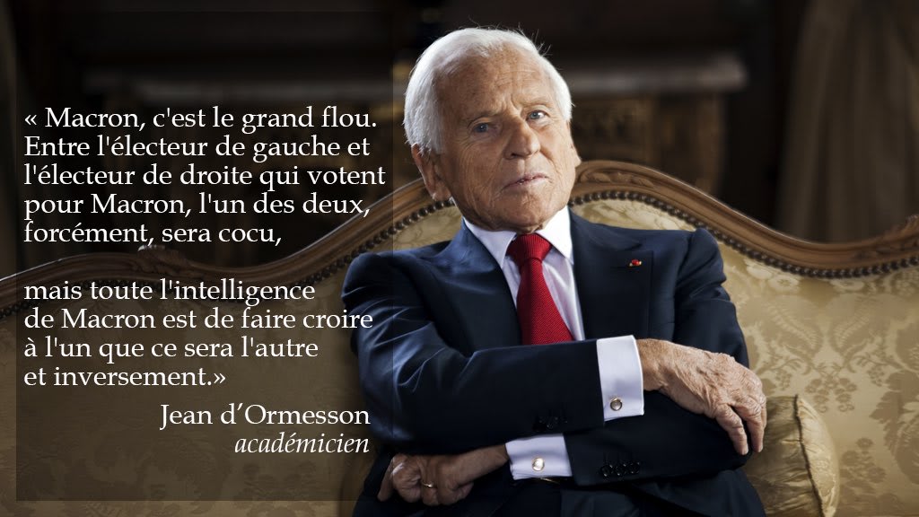 Au départ il détonnait, mais en quelques semaines de campagne on se rend compte qu'il est porté par des forces qu'il prétendait combattre. Intelligence supérieure, c'est indéniable. Pour le reste, on n'attend plus grand chose de tous ces politiciens/politicards de tous bords.