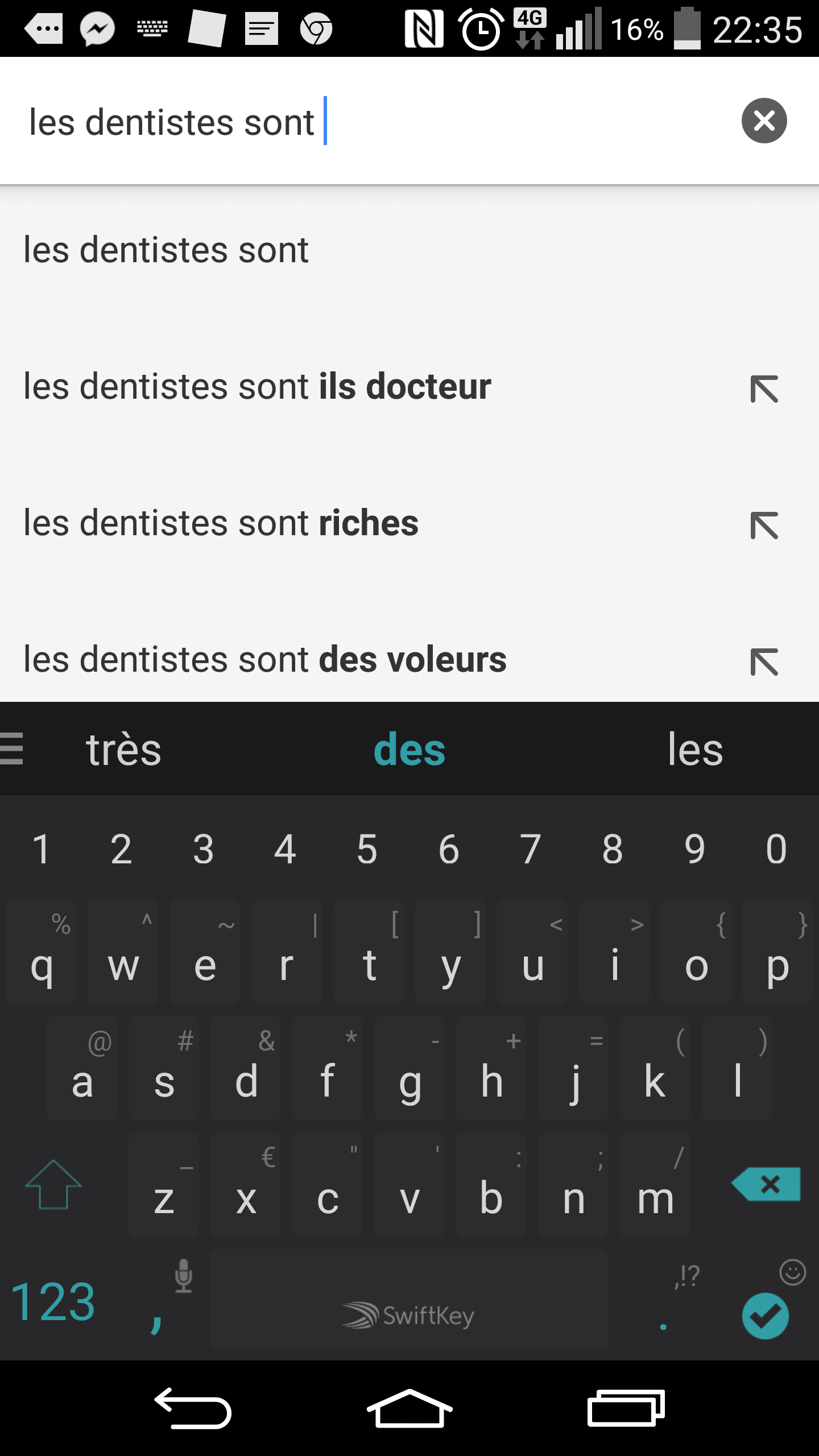 > Puis regardez ce que la requete "les dentistes sont" donne comme resultat sur