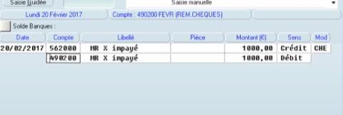 J'ai omis de préciser que le chèque a été comptabilisé le 28 décembre 2016 et qu'il a été rejeté par la banque le 6 janvier 2017.