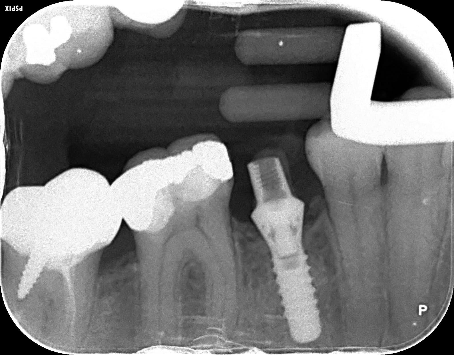 Bonjour j'aimerai avoir votre avis sur la marque de cet implant posé chez une patiente qui aimerai changer sa couronne provisoire en place depuis quelques années...