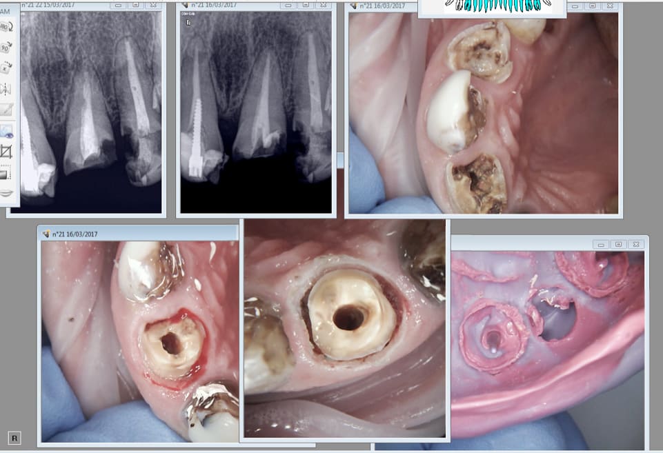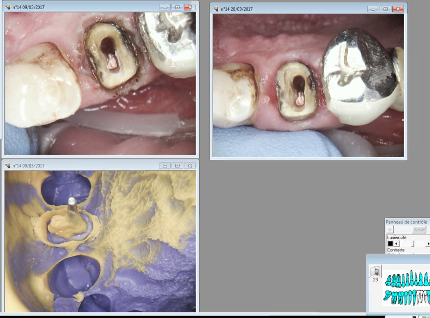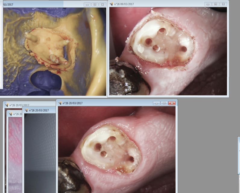 Tiens suite de mon Ic à 4 pattes empreinte prise le 9 03 et pose aujourd'hui. Aspect de la gencive encourageant après le coup de laser.