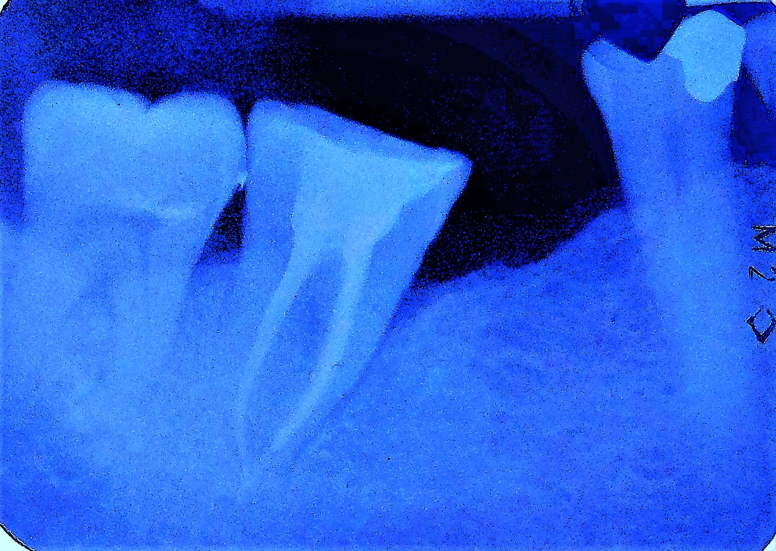 CIC sur i core, fistule vestibulaire à mi hauteur de la racine, pas pu en suivre le cheminement.