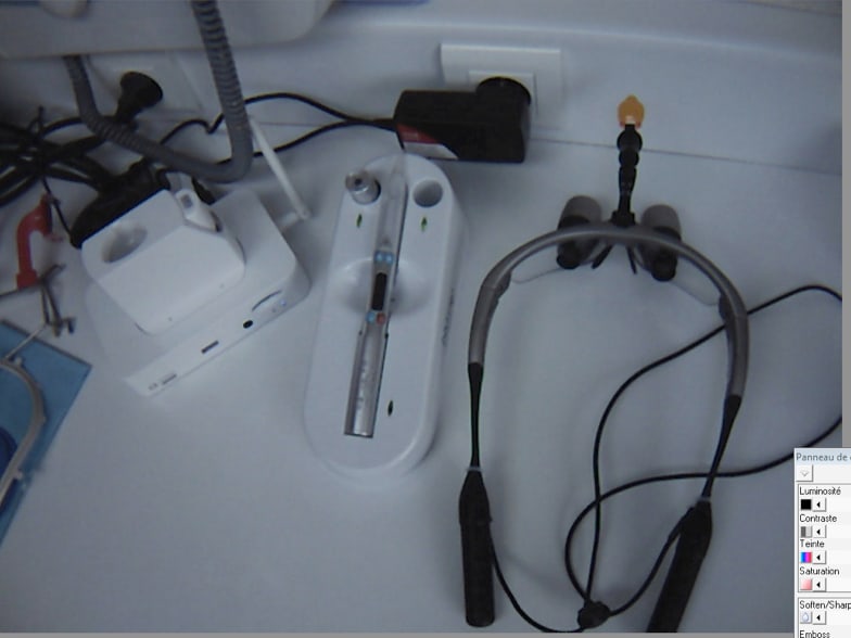 Il investit dans son cabinet comme moi. Camera caresrteam CS 1500, laser loupes orascoptic XV1. Il y en a pour 15 000 euros rien que dans ces 30 cm 2.