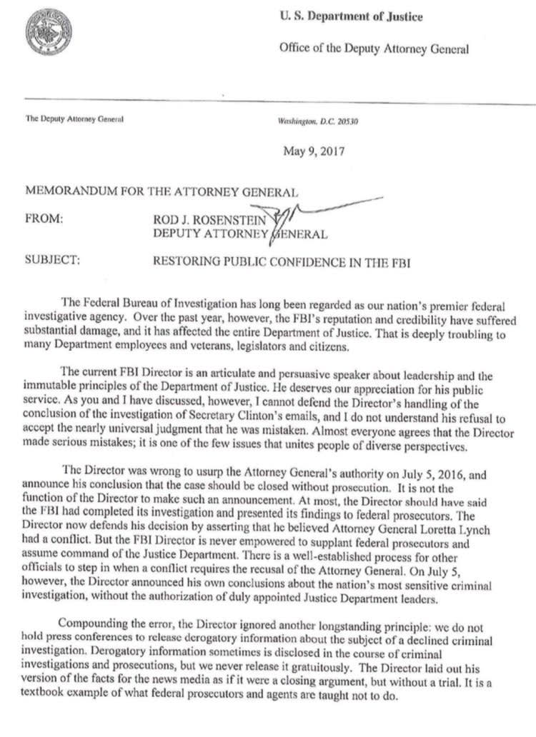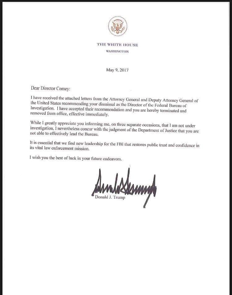"Le directeur du FBI viré, et des accusations contre Obama et son administration corrompue qui aurait couvert les scandales de Hillary Clinton."