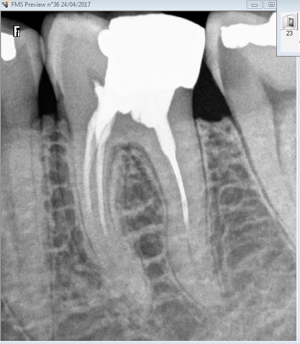 Tu vois par exemple casa n'aurait pas soigné cette 37 juste derrière le merveilleux traitement endo de 36. parce que casa n'aurait pas fait de rétro coronaire. Que va il se passer endo ou pas ? A vrai dire j'en sais rien tout dépend de si effraction pulpaire ou pas lors du nettoyage de la cavité ca a l'air limite. -)