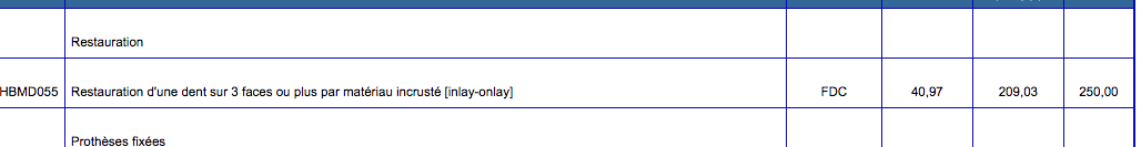 > 250 euros pour un onlay pour les CMUS d'ou l'intéret de l'onlay turbo-usiné. -)