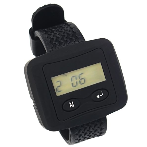 Elle garde la montre pager dans la poche de sa blouse ce qui lui semble le plus pratique, on peux la paramétrer sur sonnerie (3 bips brefs, discrets mais cependant bien audibles et pas trop puissants pour ne pas ameuter l'ensemble du personnel) ou par vibration c'est au choix. La portée est de 300 mètres et couvre en tout cas l'intégralité de notre vaste cabinet avec ses nombreuses salles et cloisons.