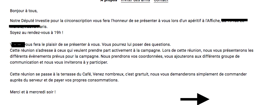 "Cette réunion se passe à la terrasse du Café, Venez nombreux, c'est grartuit, nous vous demanderons simplement de commander auprès du serveur et de payer vos propres consommations."