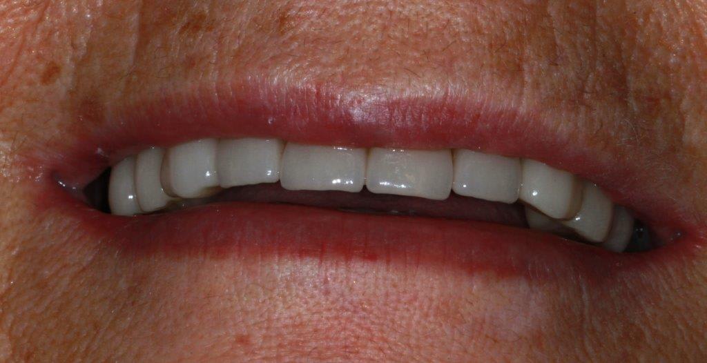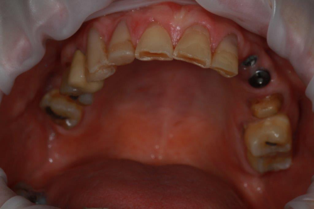 des nouvelles de ce cas... mise en charge des implants et attelle incisive mandibulaires avec suppression du diastème