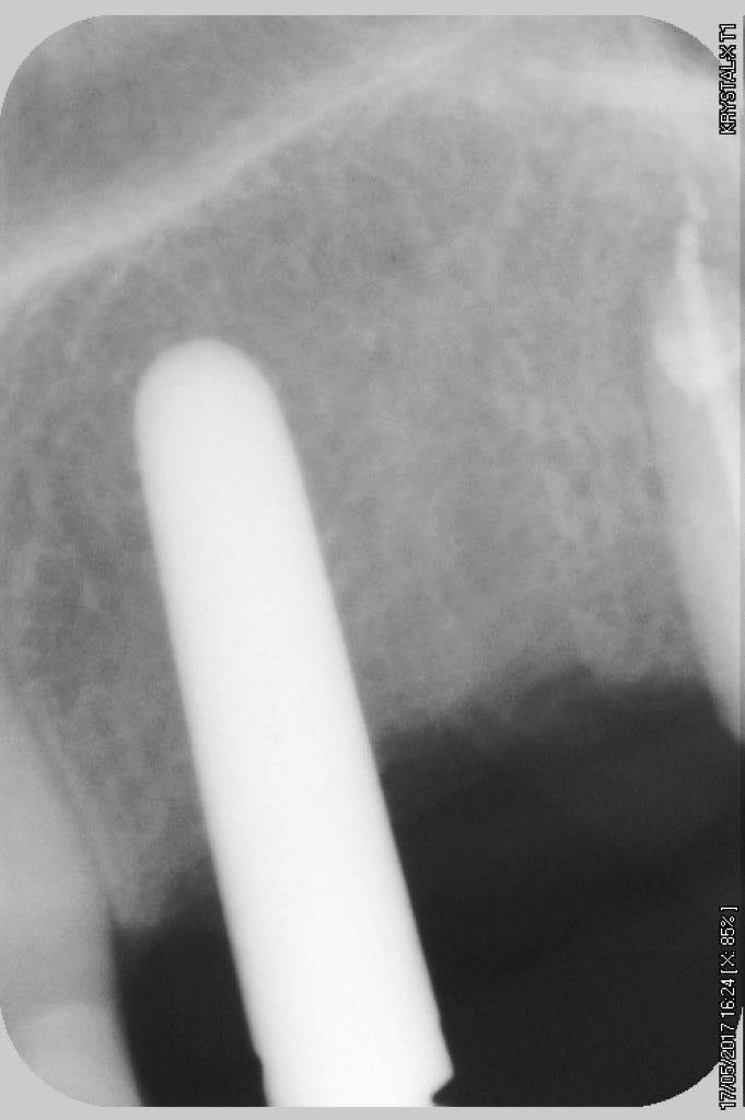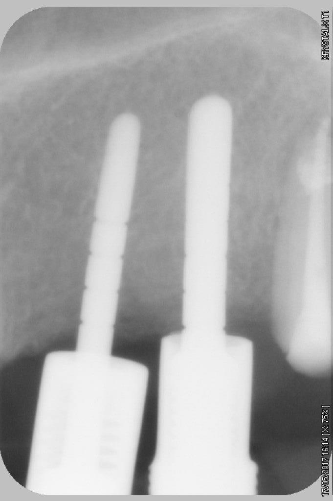 petit cas sympa ancien bridge très mobile....plutôt que d'extraire 25, j'ai déposé la couronne, retraité la dent stabilisation pendant deux mois puis séance d'ostéotension et ce jour pose de deux axioms PX 34120 après expansion...