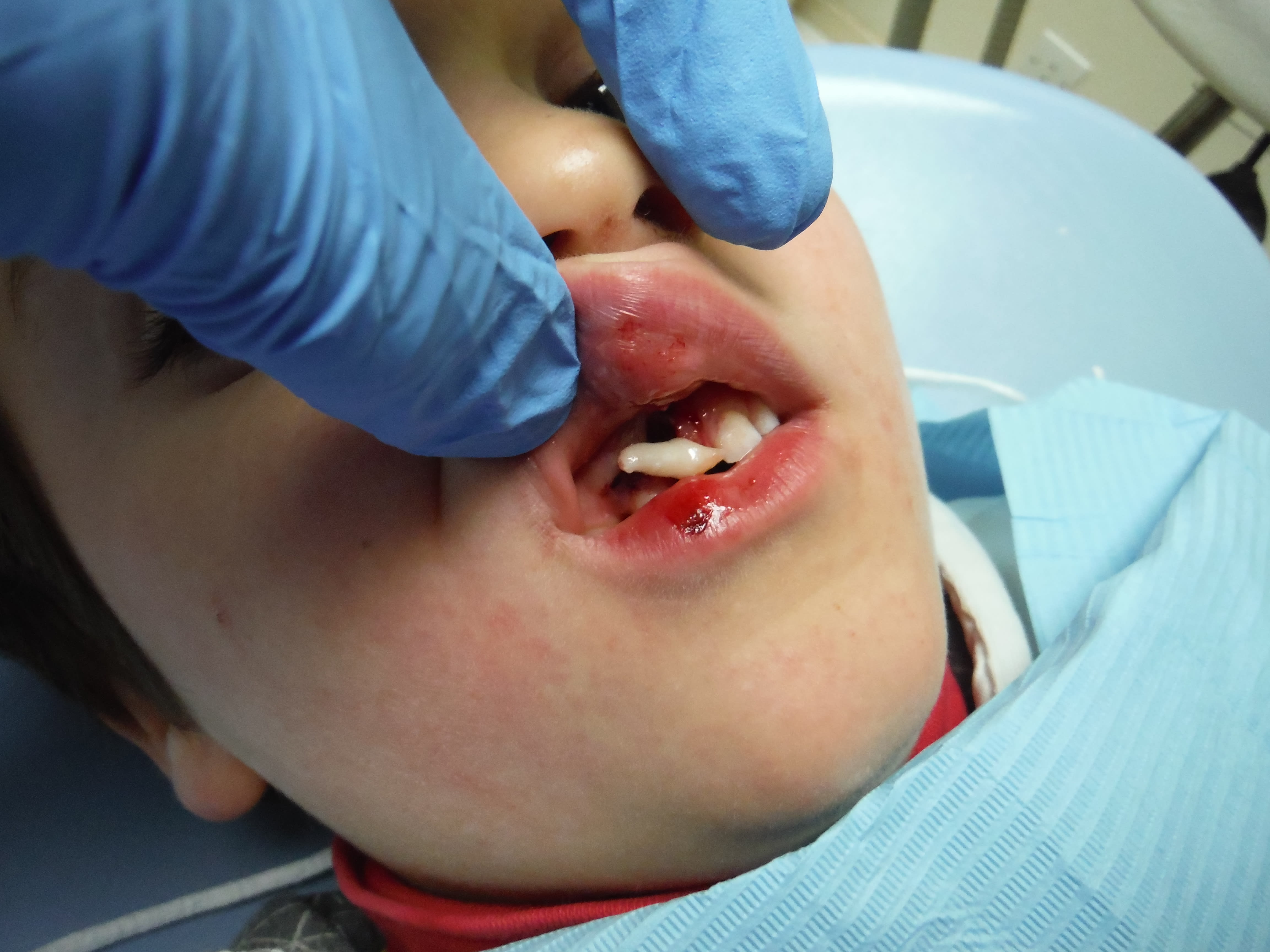 Le truc qui te met bien à l'heure. Et encore! j'ai pensé à faire la photo après avoir recollé le fragment de la 11. Pour la 21, fragment perdu, compo à main levée. Récréation... 8 ans, des apex ouverts et des cornes pulpaires pas loin des fractures... à suivre.