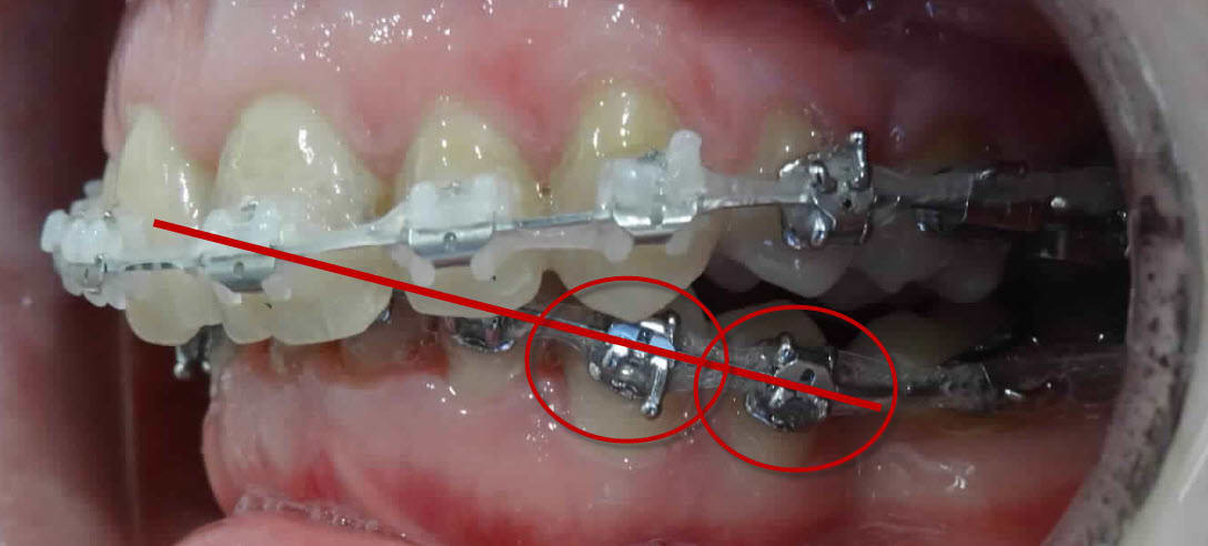 Cependant, dis-toi bien que cet arc « reverse curve » ne pourra être efficace pour corriger la supraclusie que lorsque l’axe des canines et des prémolaires sera lui-même corrigé. Imagine le temps que tu vas mettre !