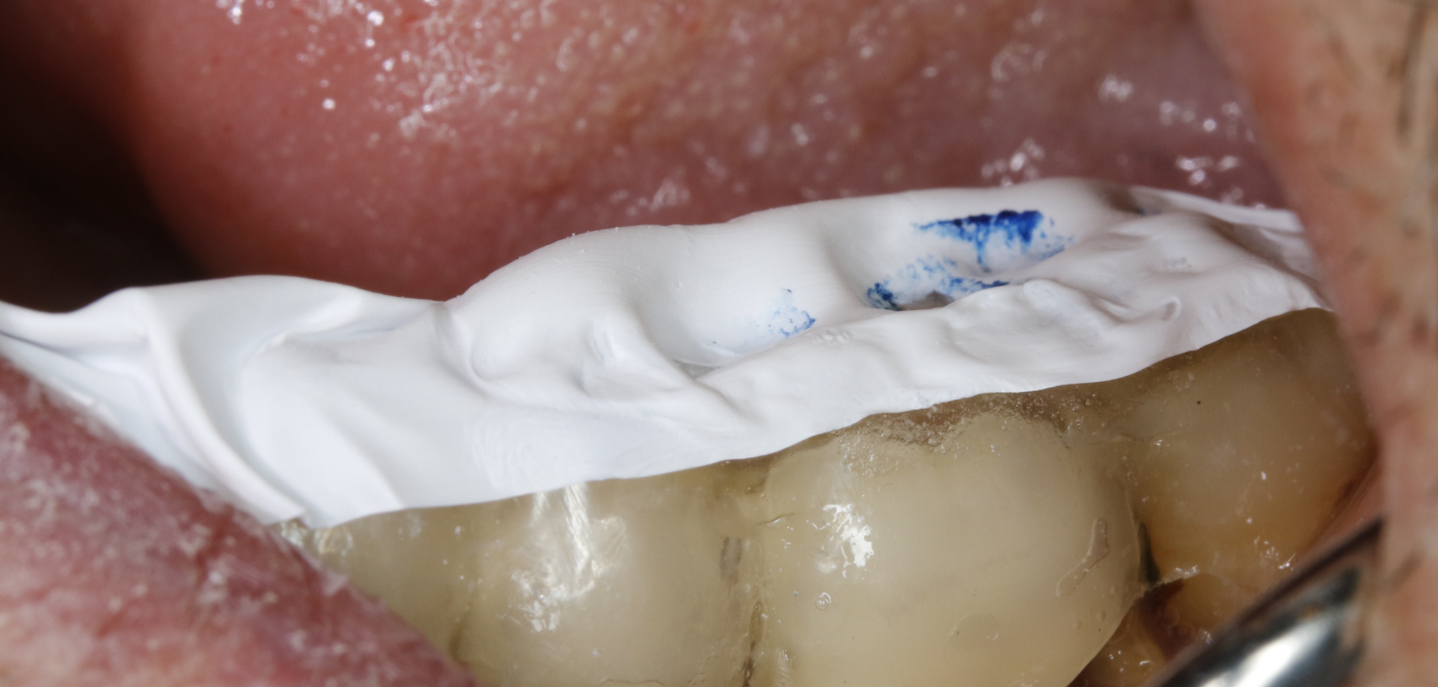 mais petit scarabée à une question à poser . Il a bien compris le process , mais se demande pourquoi d'emblée tu ne lui cherche pas sa centrée . bien sur cela suppose de travailler sur la gouttière des 2 cotés en même temps donc plutôt avec de la résine que du compo . Parce sans contacts post , ton zozo il a propulsé d'ou le contact incisif ?