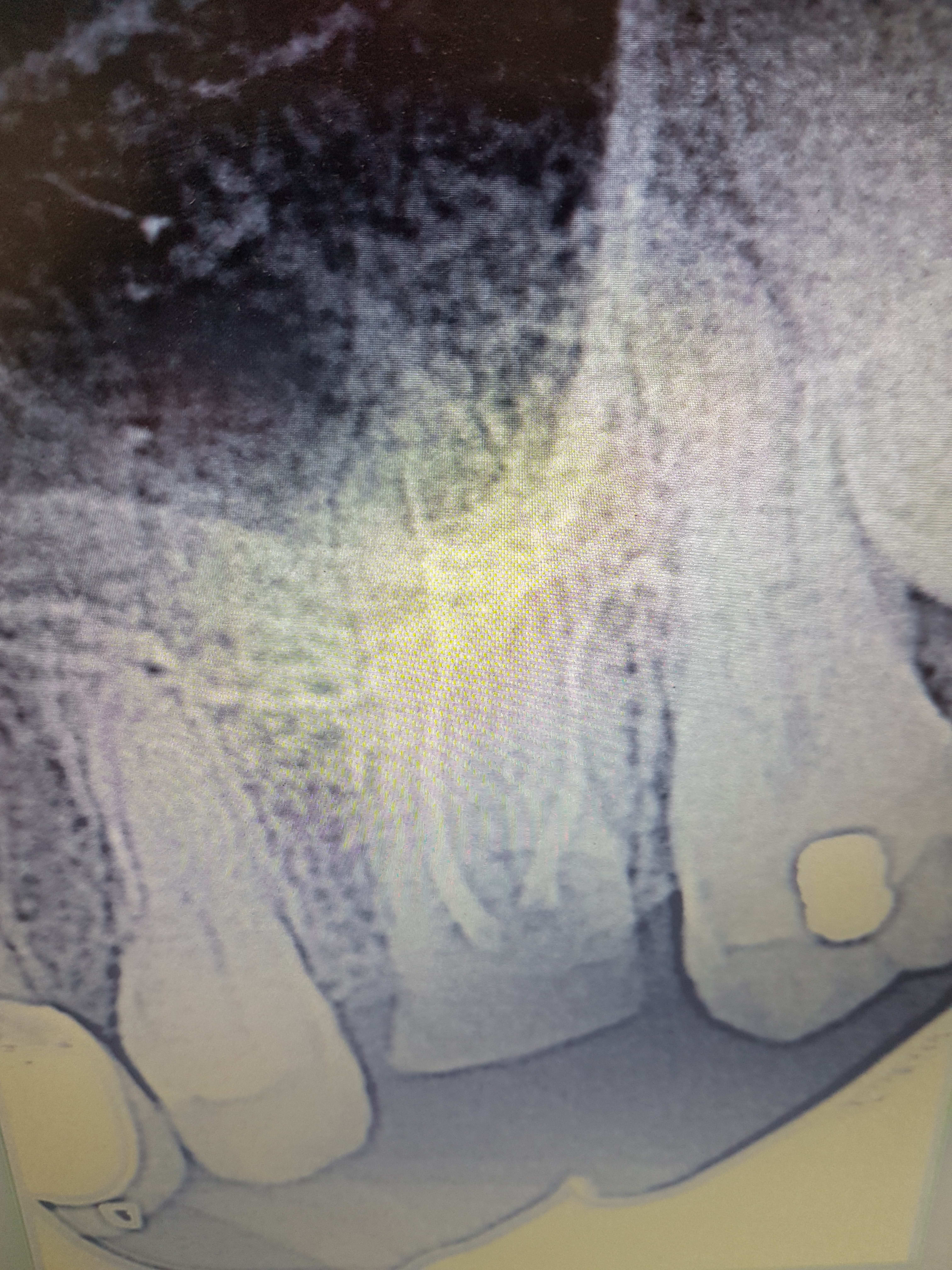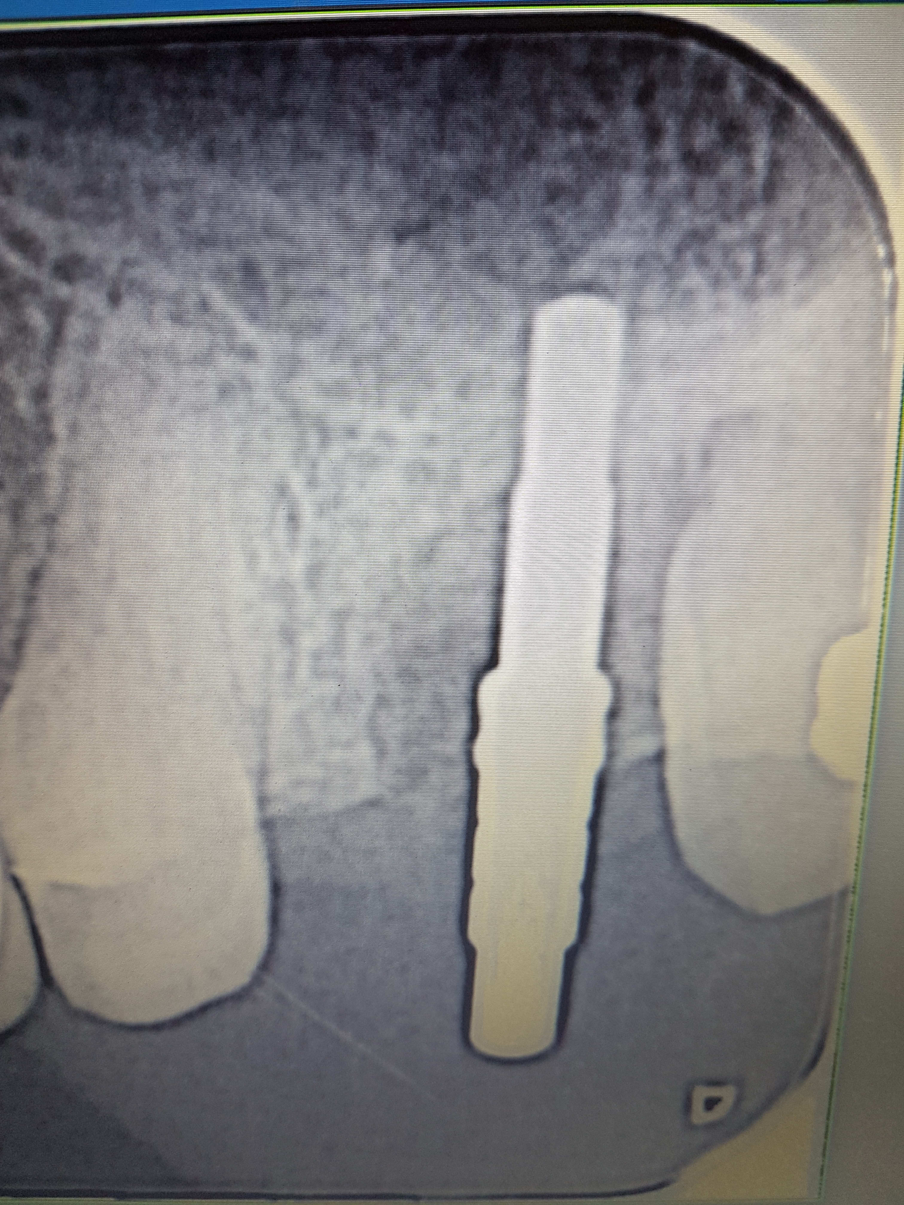 J'insère donc la xénogreffe, puis elle est poussée avec mon foret de 3 mm toujours en mode reverse à 100 trs/min et 50 N de couple. Enfin insertion de l'implant. EN moyenne j'obtiens 40 à 50 N. vis de couverture et attente de 6 mois. Je vais mettre les radios.