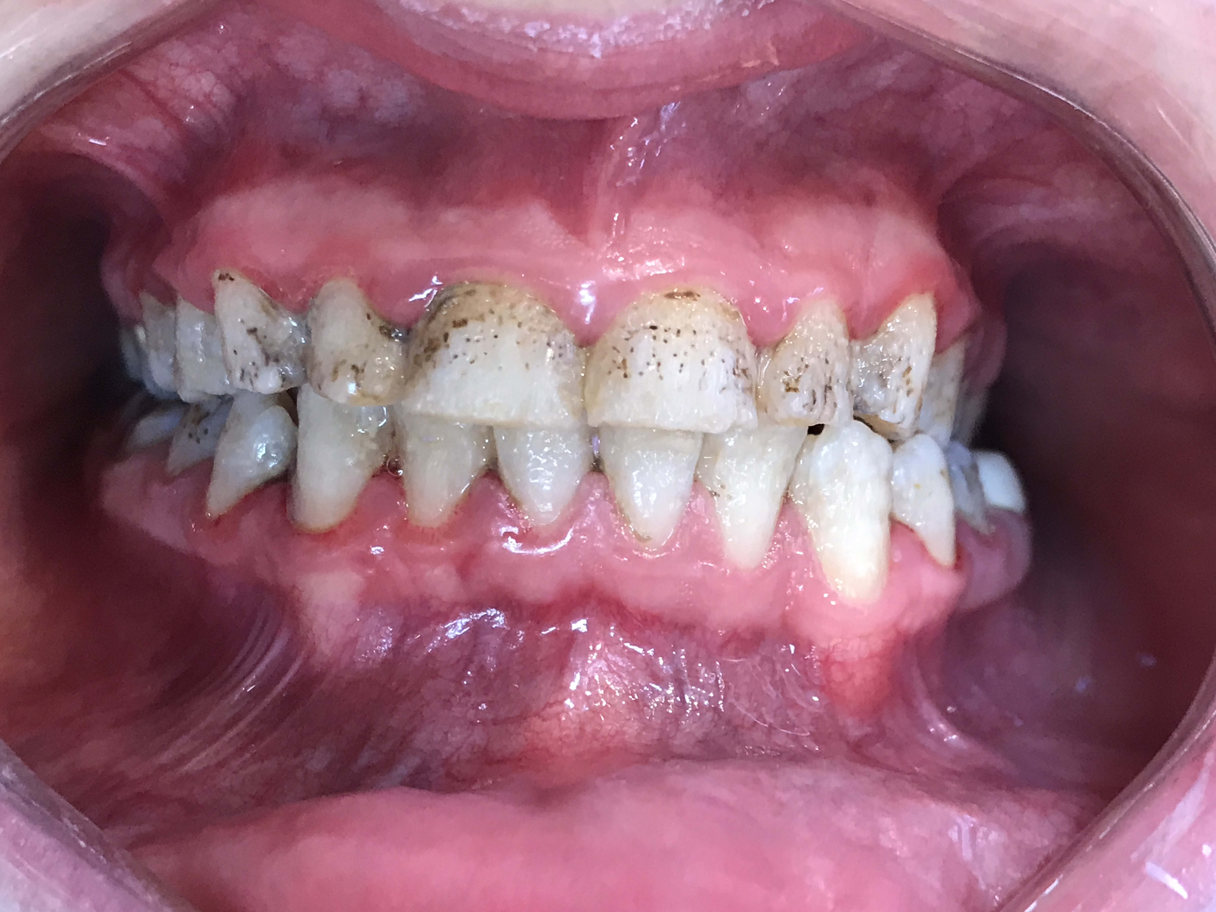 t'as vu le niveau d'inflammation de la gencive ??? un coup de soufflette entre deux dents et ça pisse le sang...