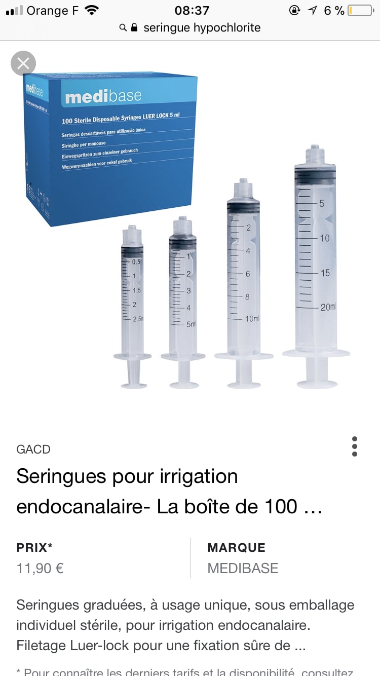 > pouvez mettre dans votre grosse seringue d’hypochlorite -> avec toute cette