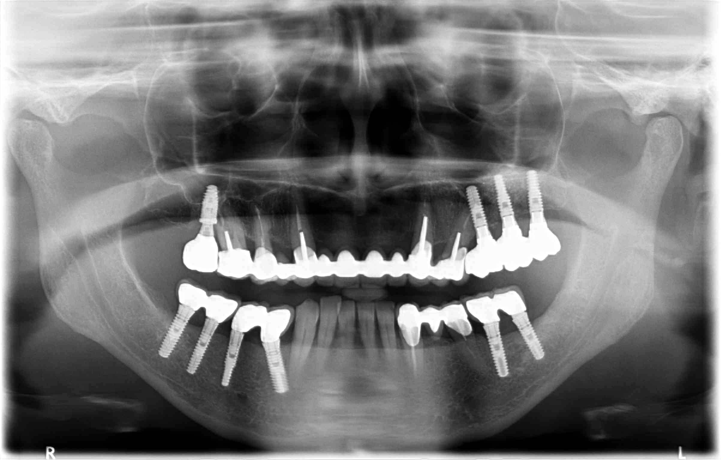 J'avoue les couronnes sur implants en bas m'interpellent un peu aussi... Quand au haut, je dirai tant que tu n'as pas démonté impossible à dire.