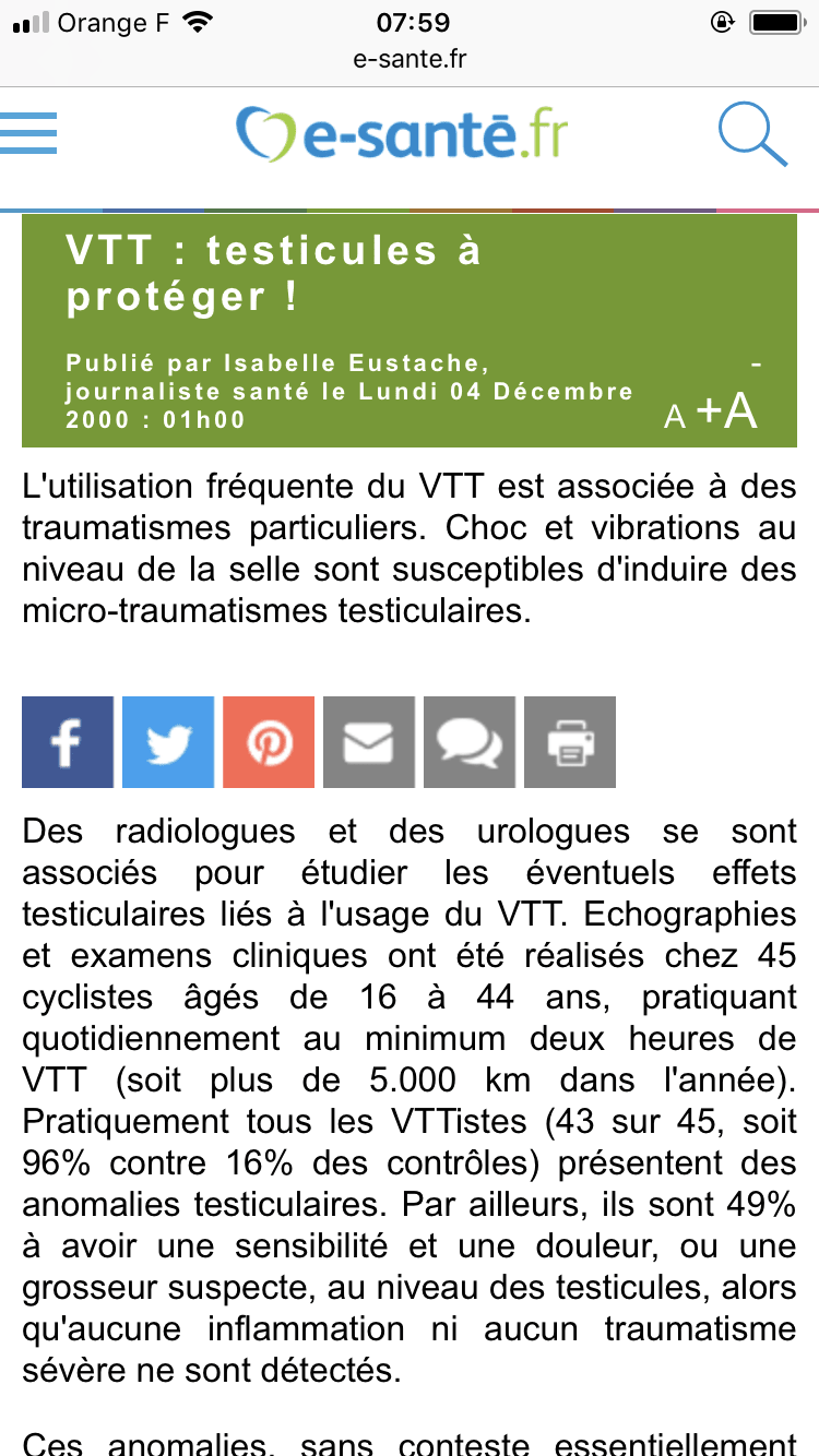 Bon courage et surtout bonne chance. J’espère que vous ne faites pas du vélo sur des pavés. Car les vibrations provoquent des micro-traumatismes testiculaires