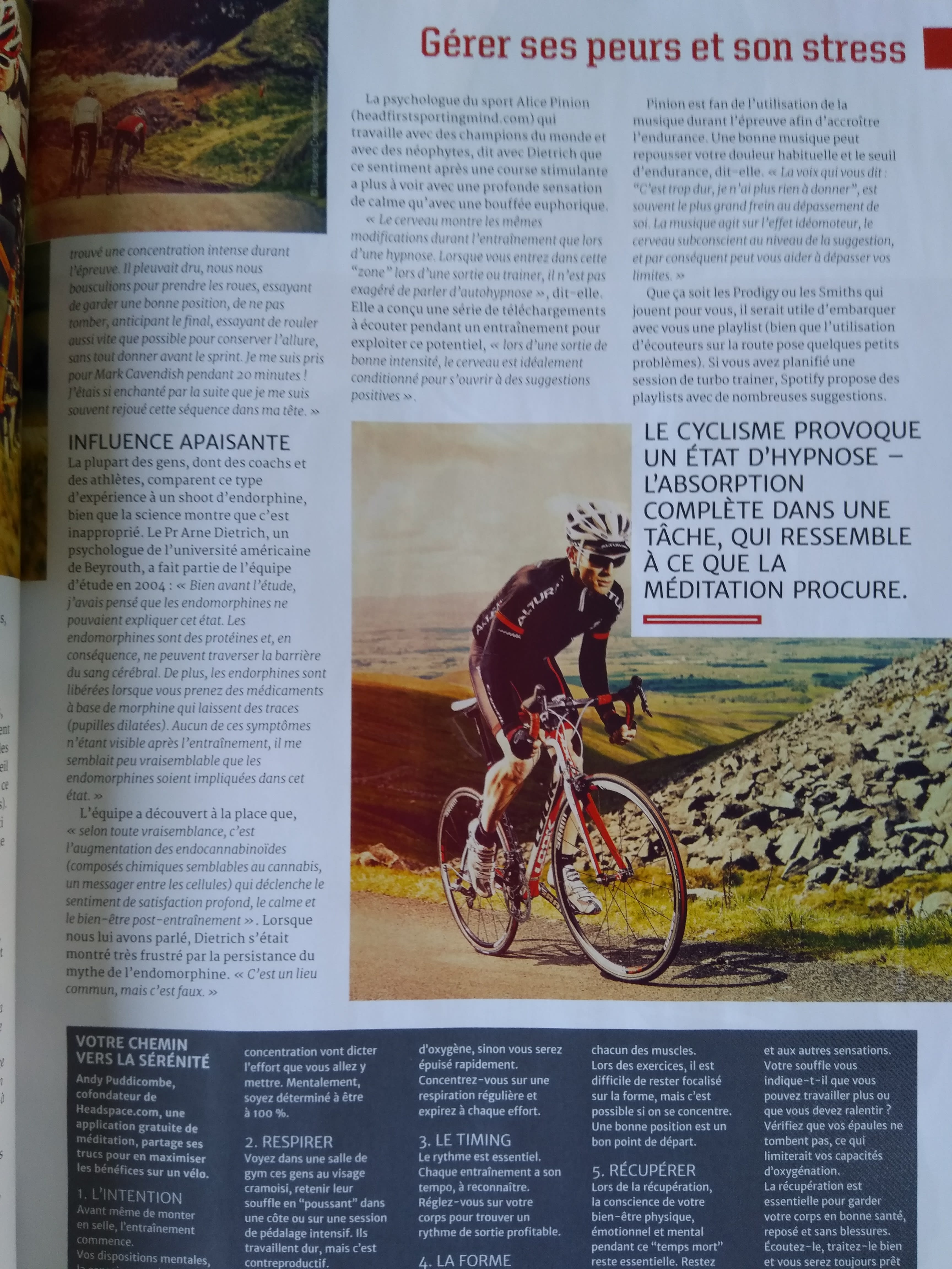 Oui bin le dieu vivant il s'est trompé, dans le cas du cyclisme ce sont surtout des endocannabinoides, ce qui provoque un état... différent.