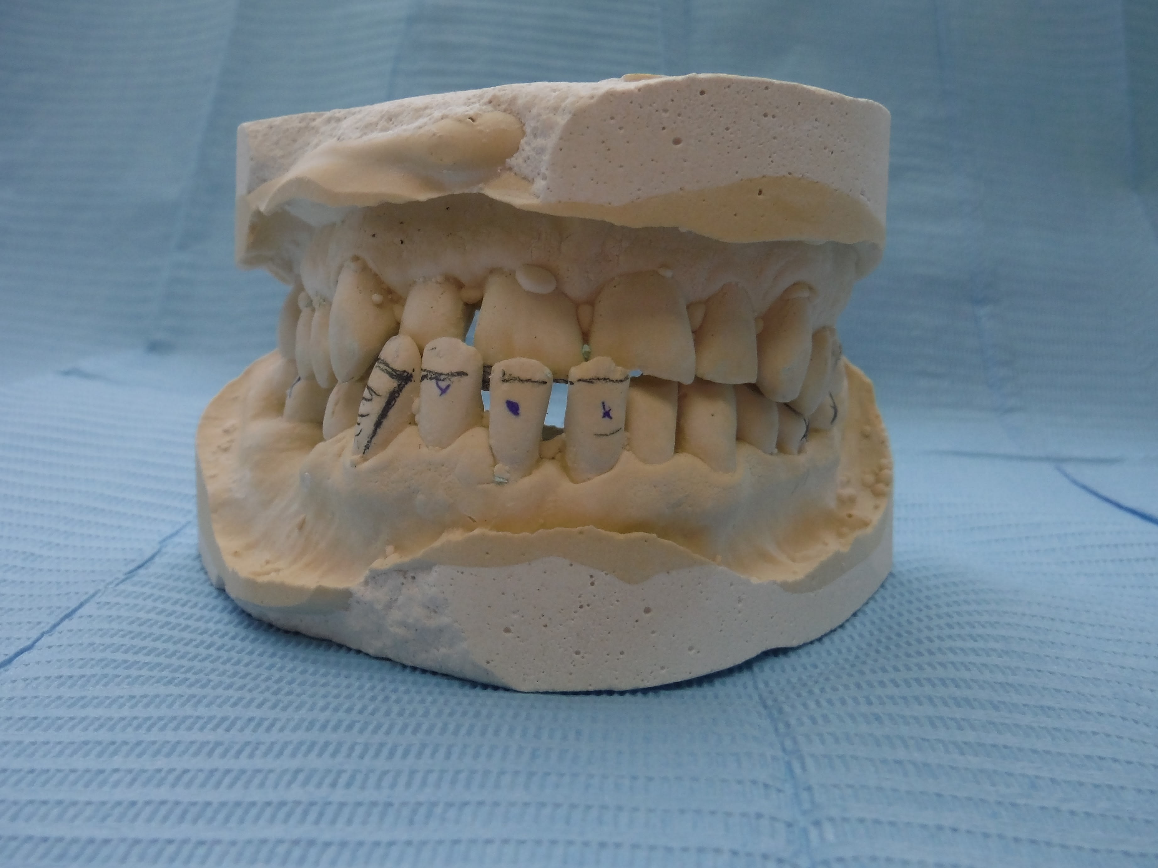 - tu mets les 2 modeles en platre dans les mains , en position OIM ( occlusion d'intercuspidie maximum )