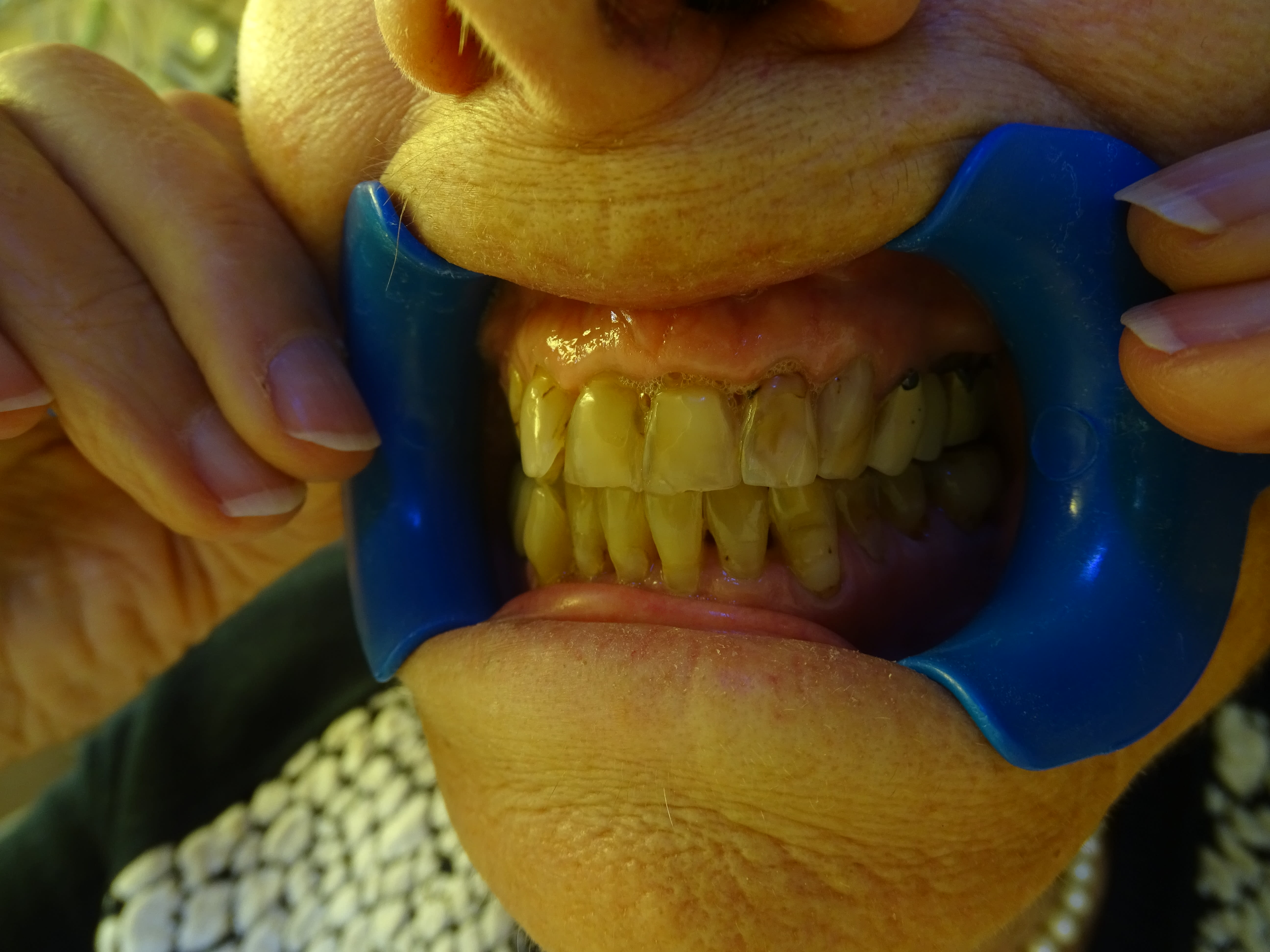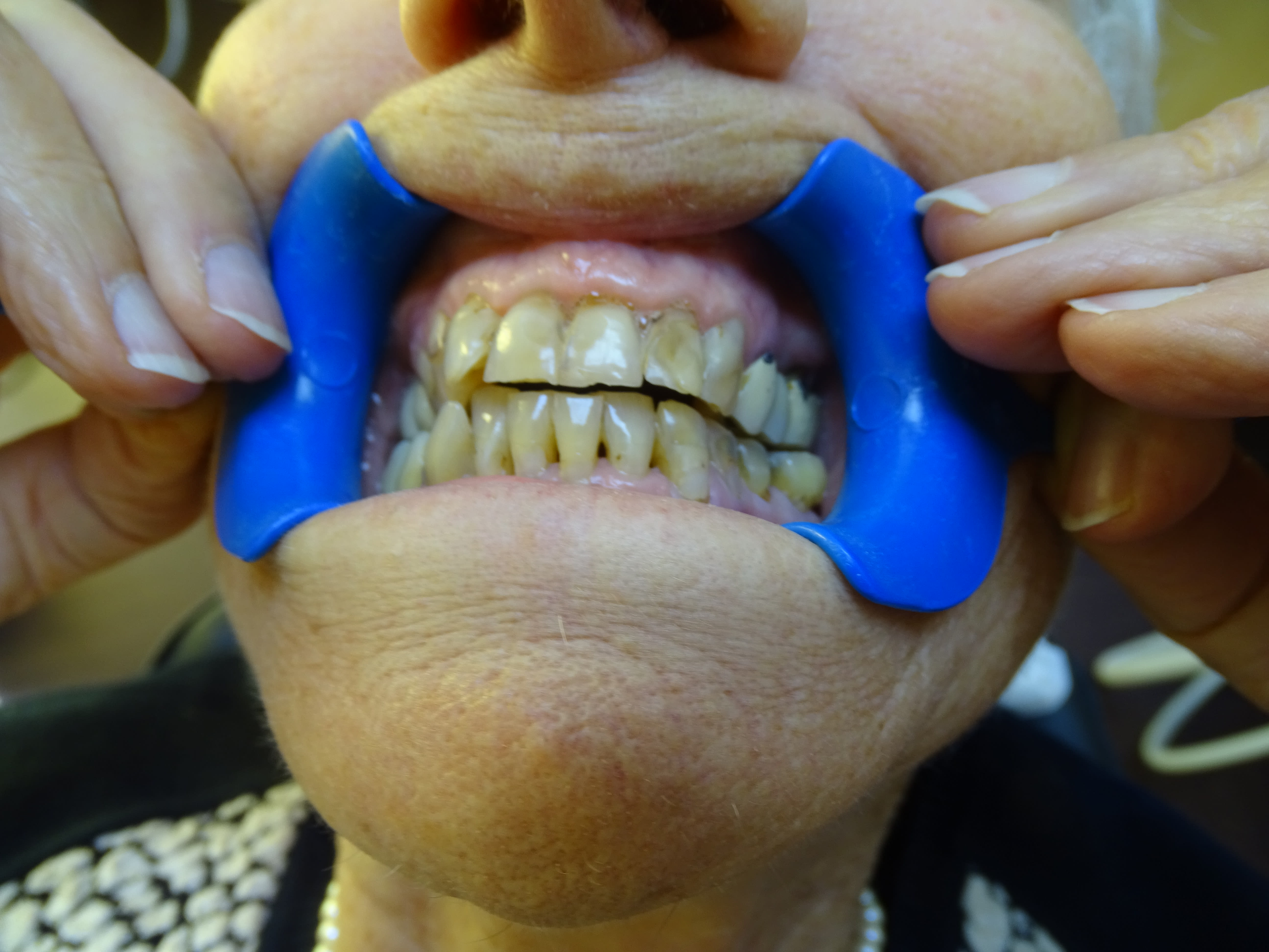 Ci joint une de mes patientes, 75 ans et des usures partout sur les faces vestibulaires.